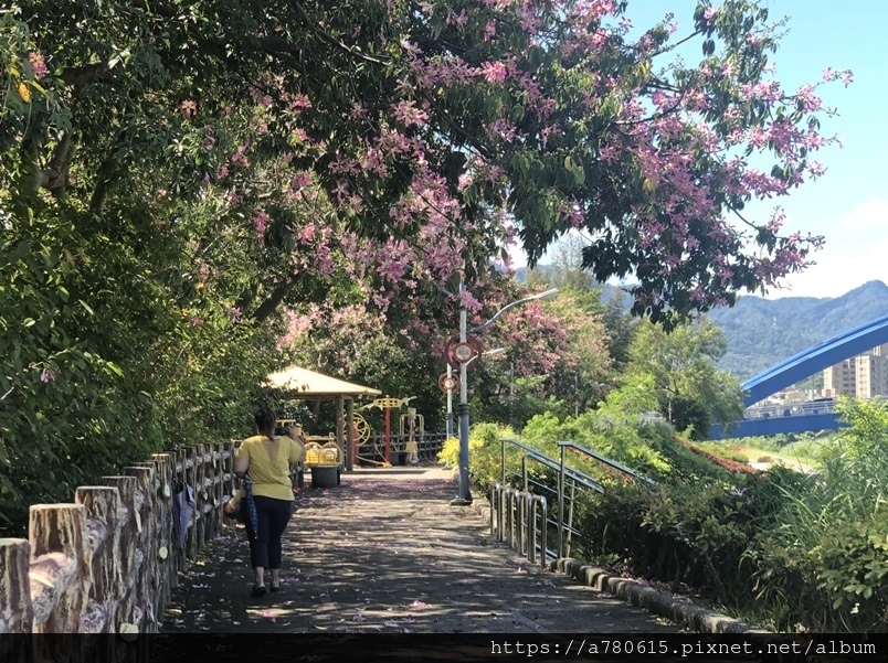 新北三峽安溪翠堤 . 美人樹燦開浪漫花朵