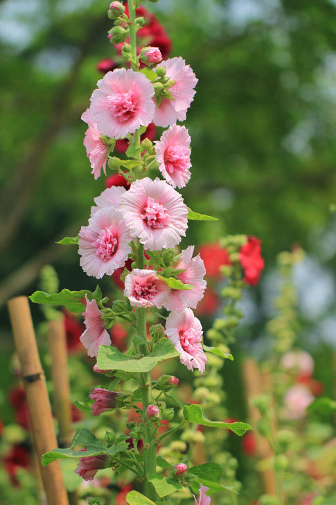 古詩中形容蜀葵:「五尺闌干遮不盡,尚留一半與人看」因為蜀葵的莖直立,高度約一