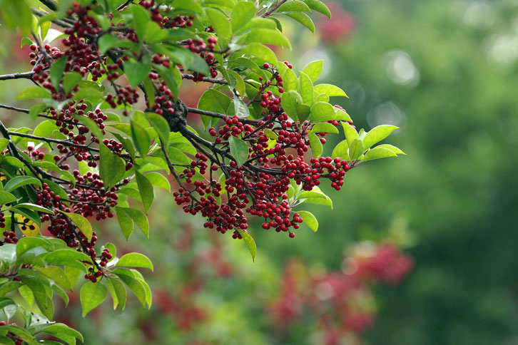 大多落在春季或夏初,秋冬結橢圓形小粒紅色的果實,果實鮮
