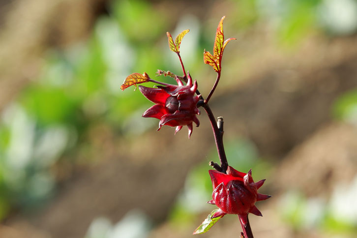洛神葵除可加工食用外,其莖、葉柄、萼果均呈紅色,配合綠葉與淡