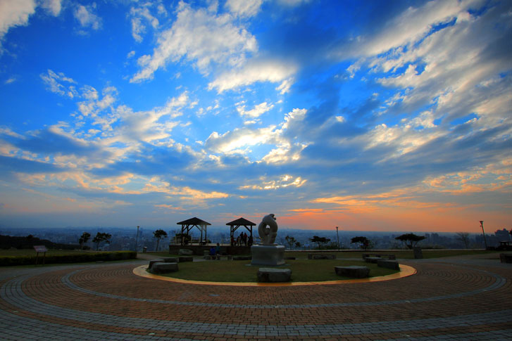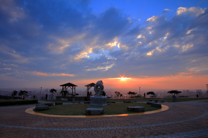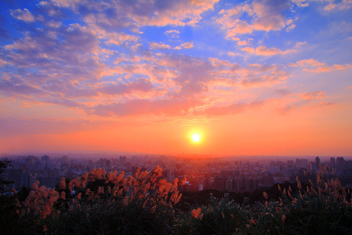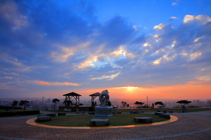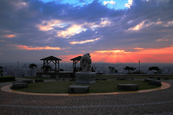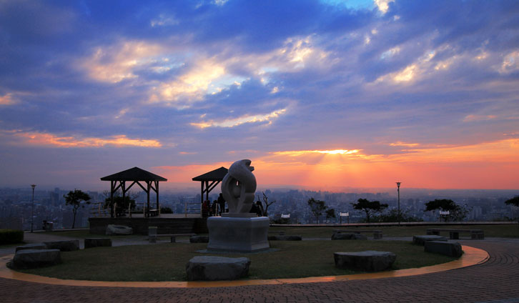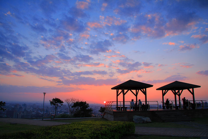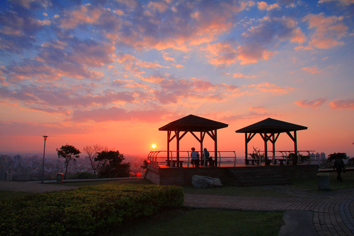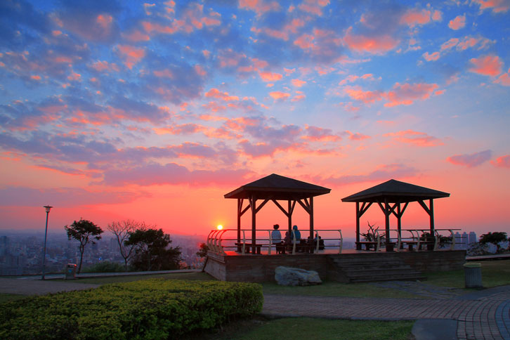 每至傍晚時分,民眾紛紛擁入賞景,登高遠眺可俯瞰桃園八德市、