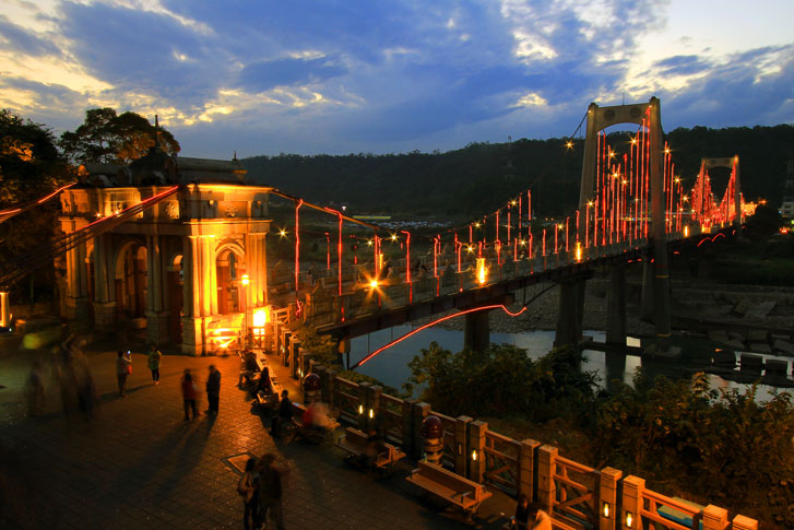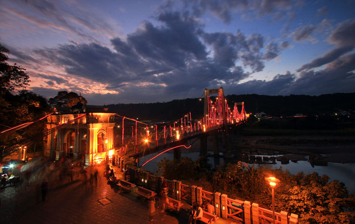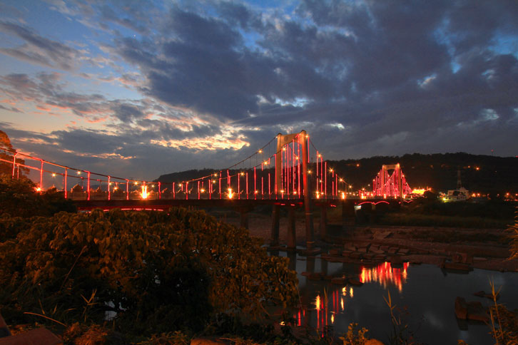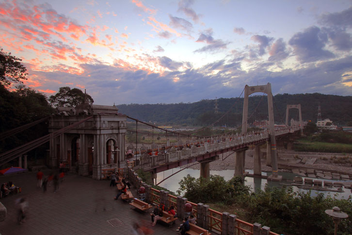代原大溪古吊橋的外觀重建,兩端橋頭另加興建二座很高的牌樓,而橋
