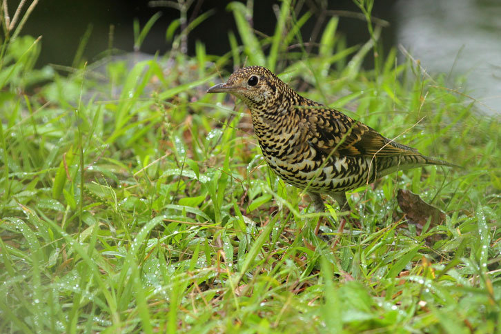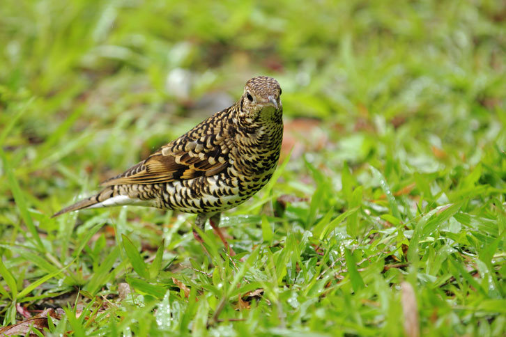 虎鶇的身長約27公分,全身大致黃褐色,有斑紋,羽毛末端黑色,看起來