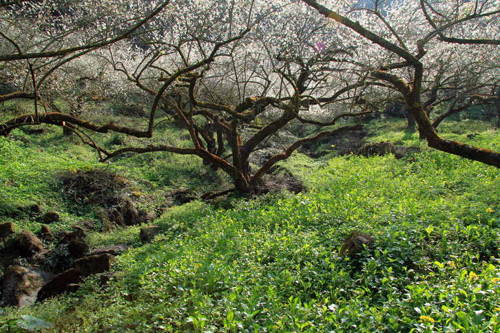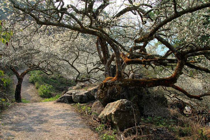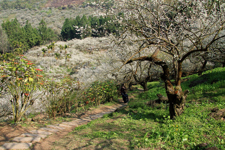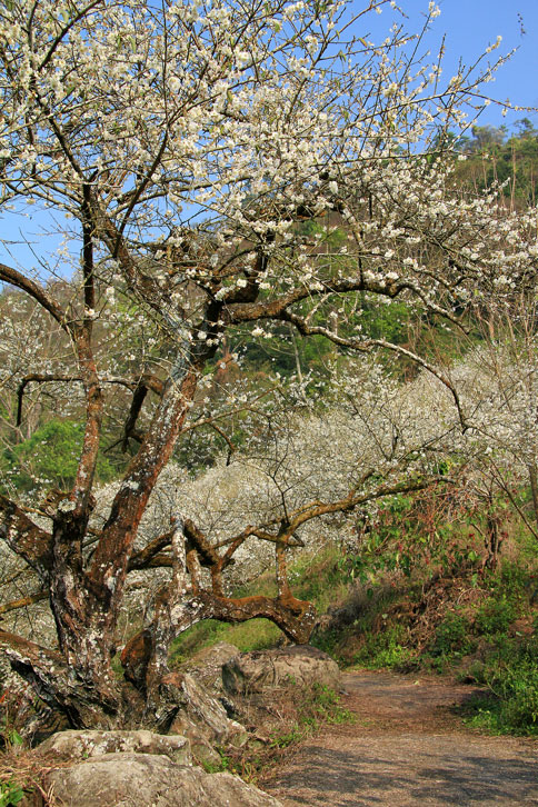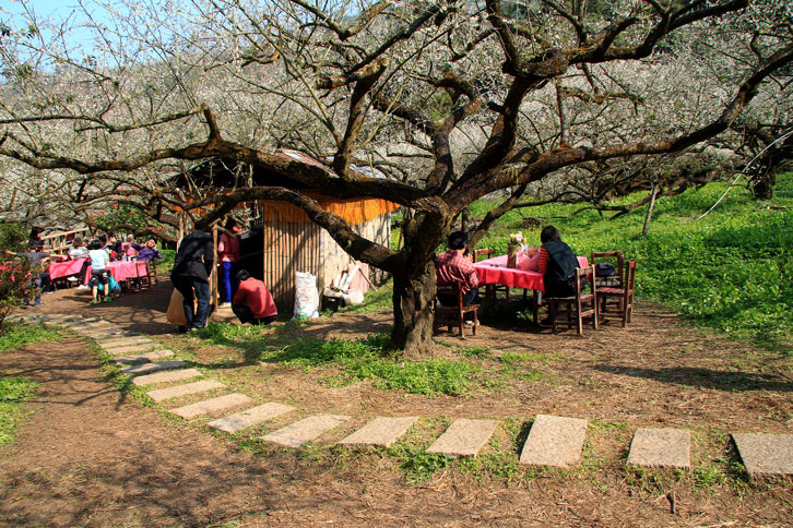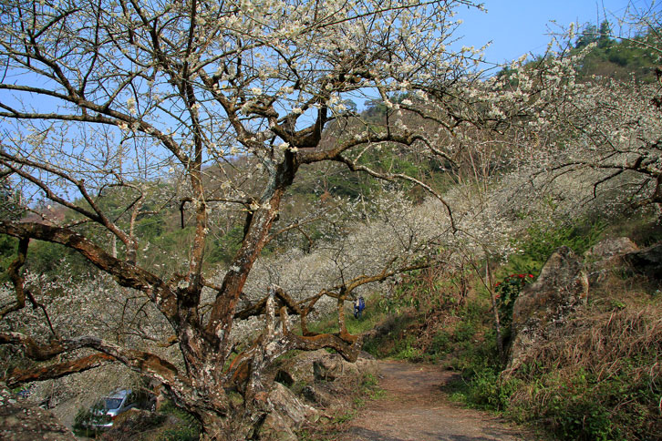 山坡間曲徑通幽, 兩旁梅樹林立,於梅樹下漫步, 沾染一身梅香 .