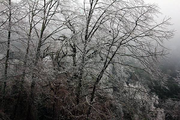 台中交界的思源埡口路段時,還可見到昨天寒流形成的山