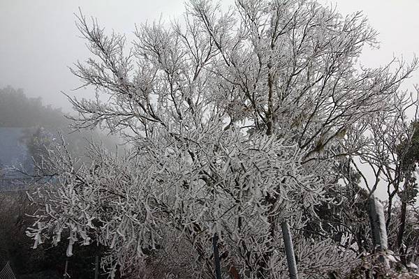 頭霧淞殘景,雖然行車中,亦見同車的旅客紛紛拿出手機