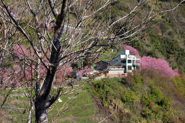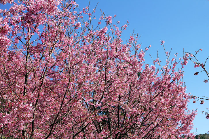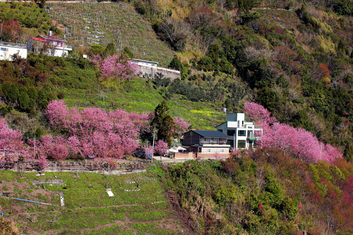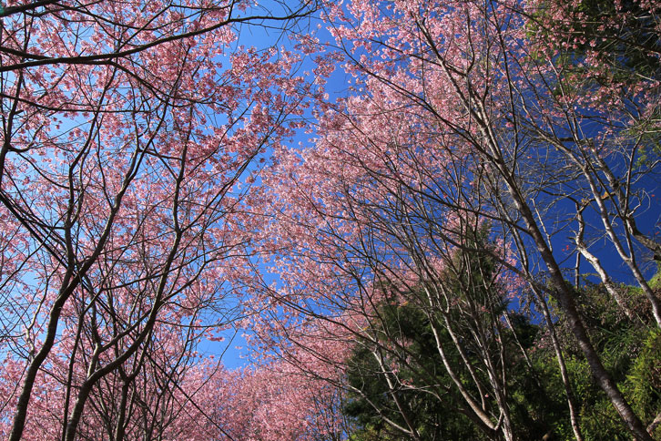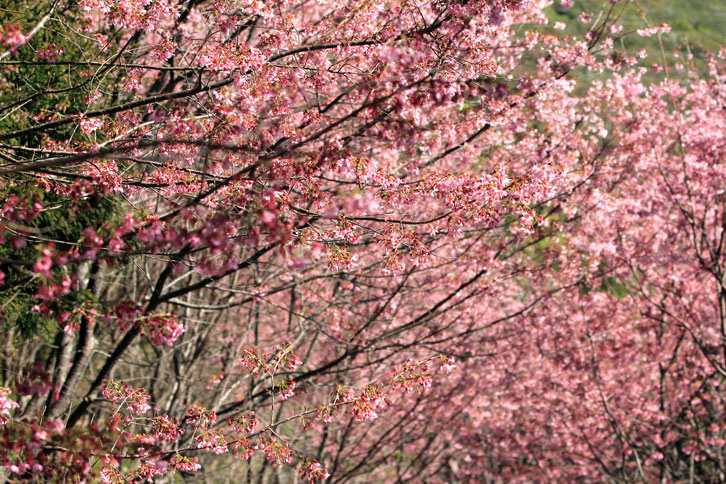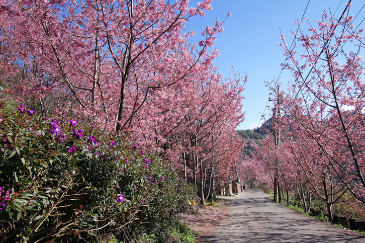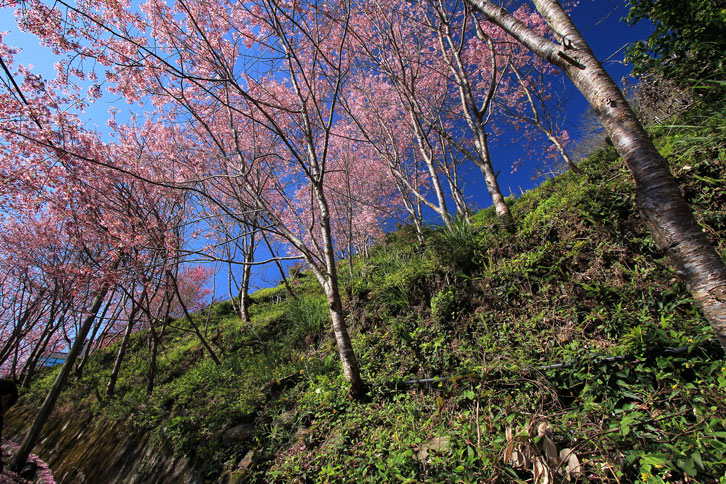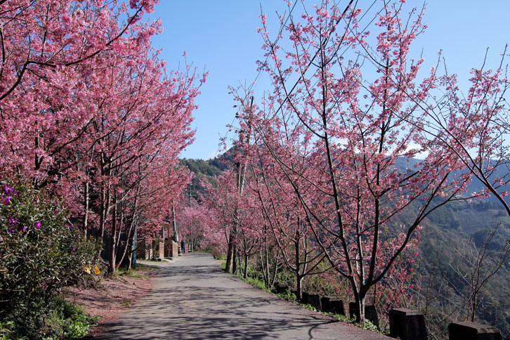 三百株昭和櫻淡紅、粉紅交錯優雅綻放,在拉拉山神木路(桃116線)