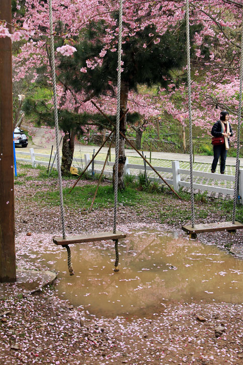 種植富士櫻與千島櫻,現在正是千島櫻盛開時。花色粉紅的千