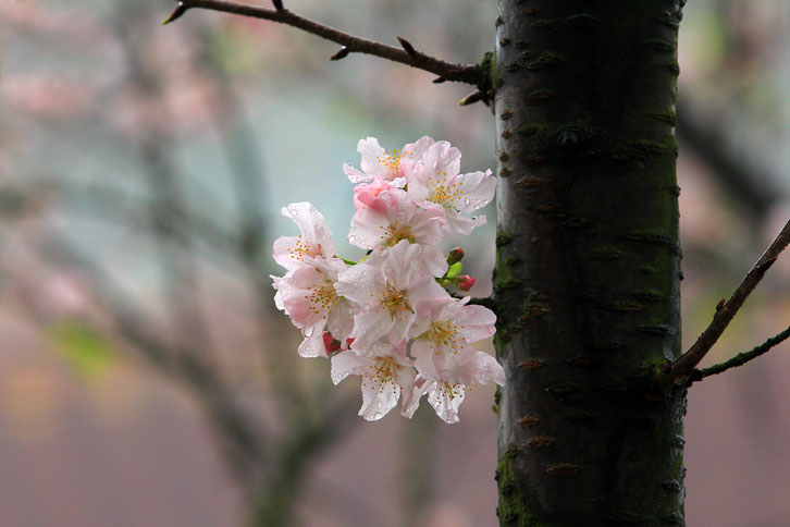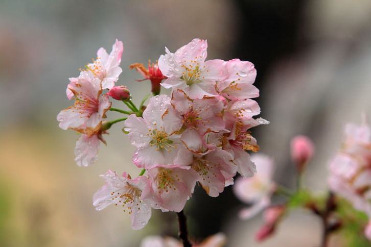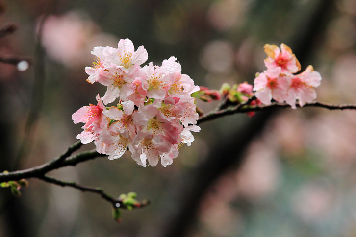 雨中的櫻花或許不算嬌豔,卻也多了幾分柔美清新,別有一番優