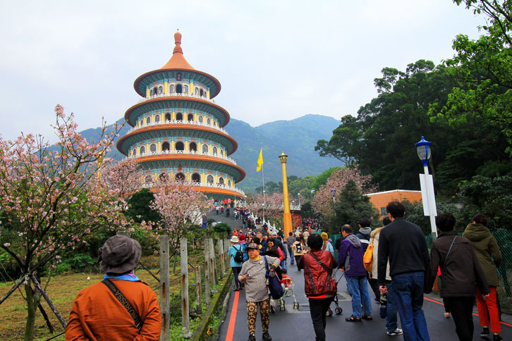 淡水天元宮近年來以櫻花聞名大台北地區,一整片的櫻花是在19