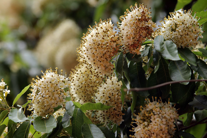 花兩性,多花且密集,排成聚繖狀繖房花序或圓錐花序,密生星狀毛