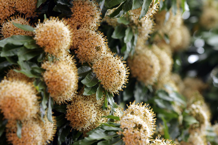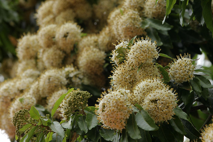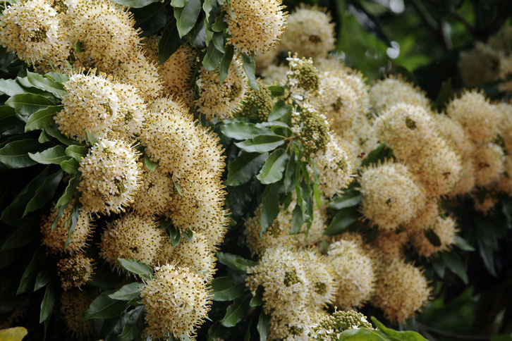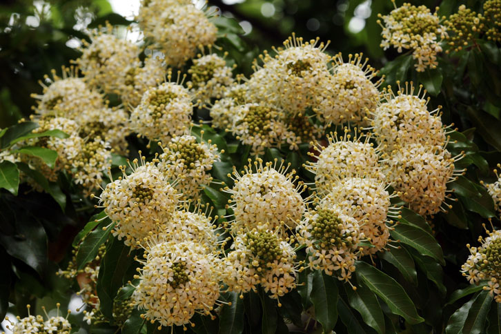每年清明節前後為其花季,放射狀的潔白花朵會轉為黃色,並散發出