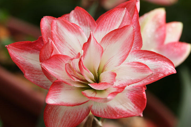 紅白相間、或具有深淺色調、斑點、條紋、鑲邊等變化,花姿清