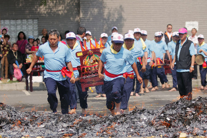 「過火」就是從火堆中走過,神轎、神像、靈旗,男男女女,抬著,