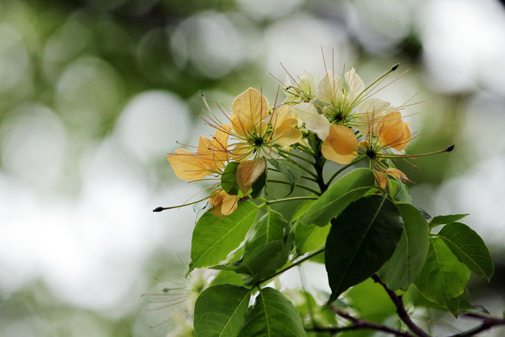 春來三月先冒嫩芽,再趁鮮推出一簇簇的花球,先白後黃,兩色