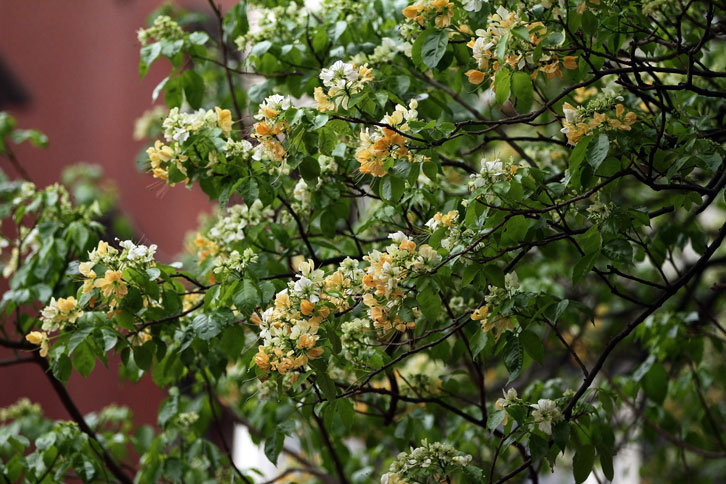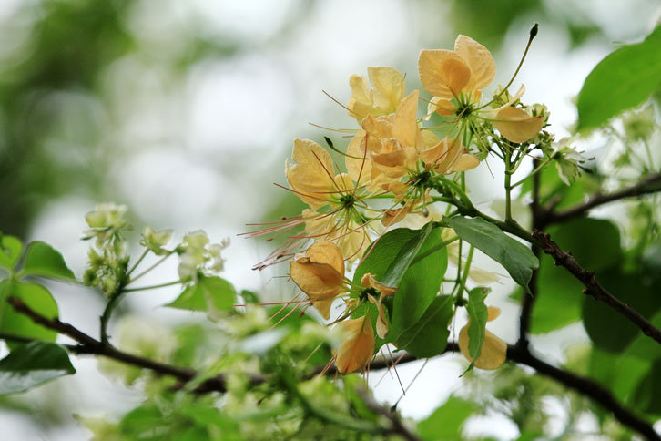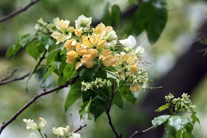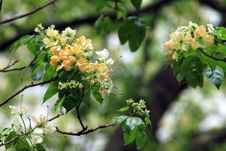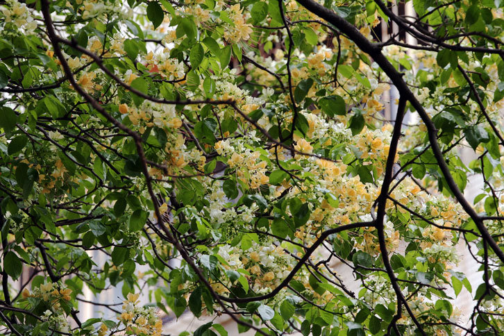 四月盛開時,滿樹金黃色的花朵和花蕾,在微風中搖曳,堪稱當