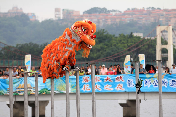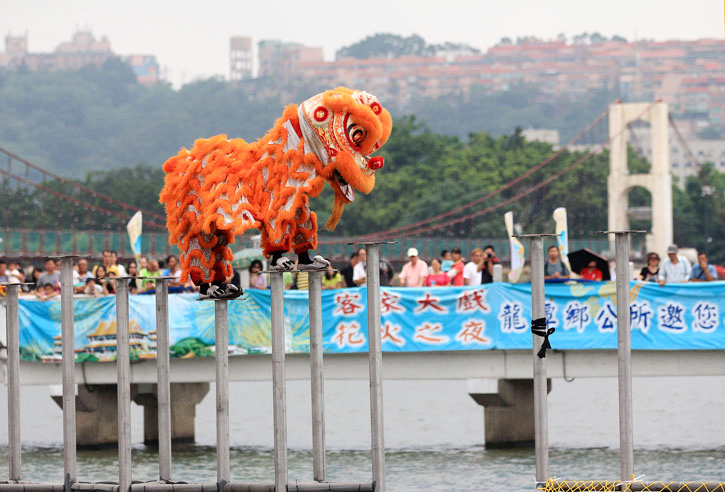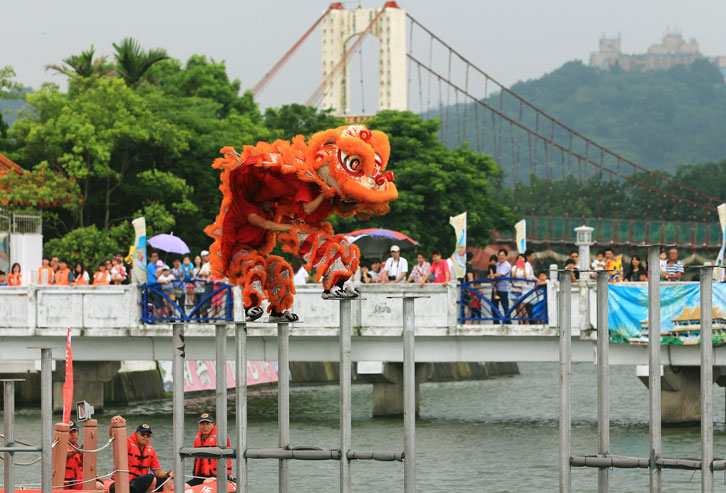 須搭配鼓聲、步伐進退,稍有不慎便可能翻落水中,難度相