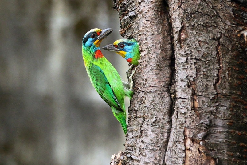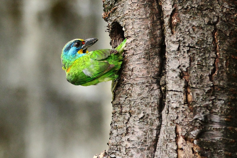 上,或是停在喬木的中上層枝葉間。五色鳥擁有良好的保護色,要