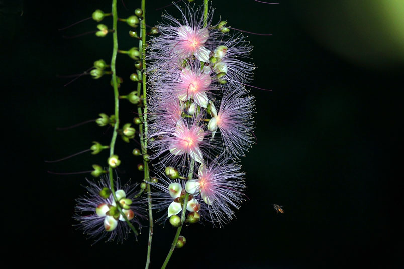 夏的夜空下,一朵朵的穗花棋盤腳花從花苞綻開至盛放,濃