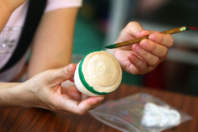 地上轉動的流行童玩。大溪和平老街曾是台灣木器童玩重鎮