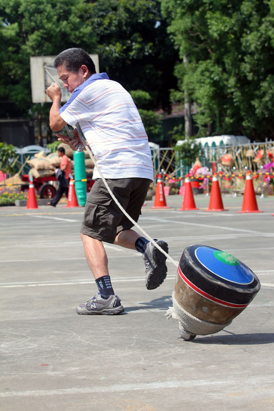 。當它緩慢下來時,再用繩子鞭它給它加油,便可轉個不停。