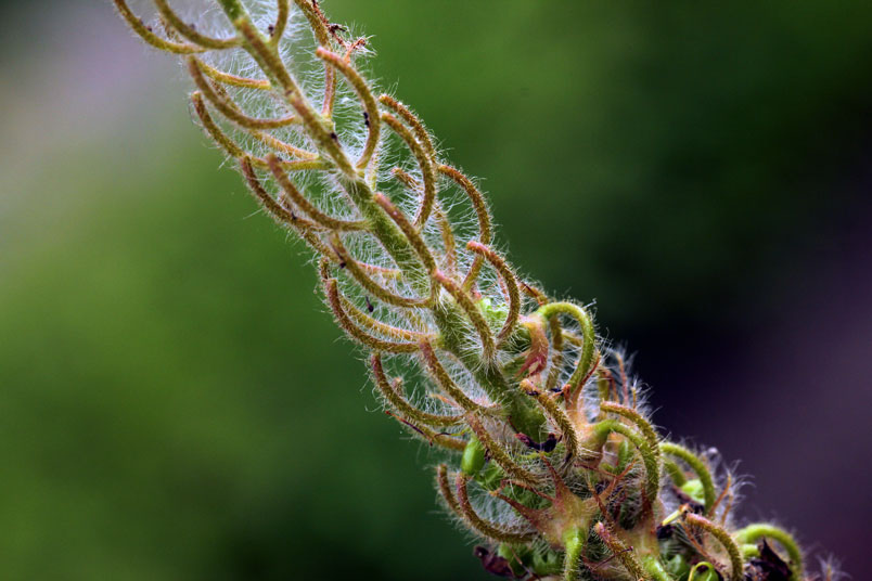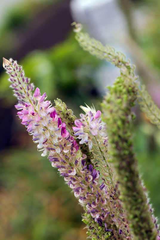 總狀花序頂生,成穗狀,長達30公分以上,先端彎曲,形似狗尾,