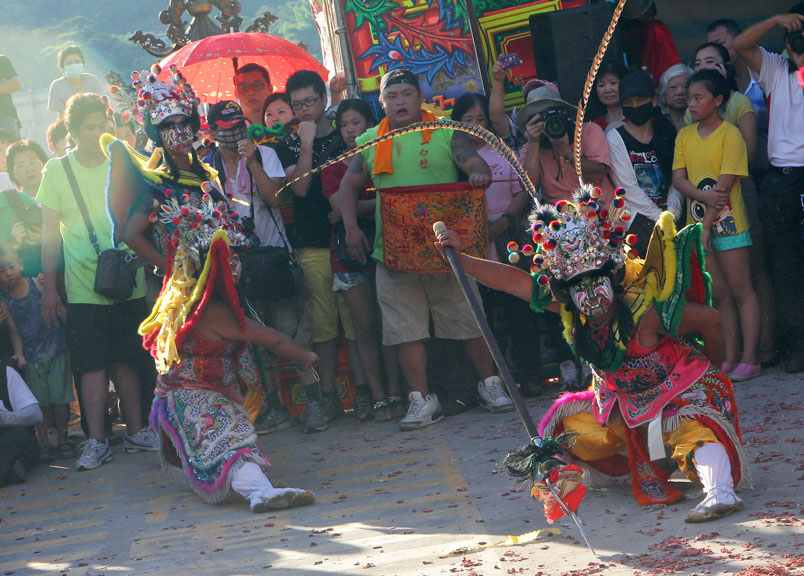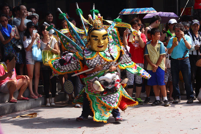 睹關公誕辰的祝壽活動盛大場面,人們似乎無視於頭頂的烈日,我到
