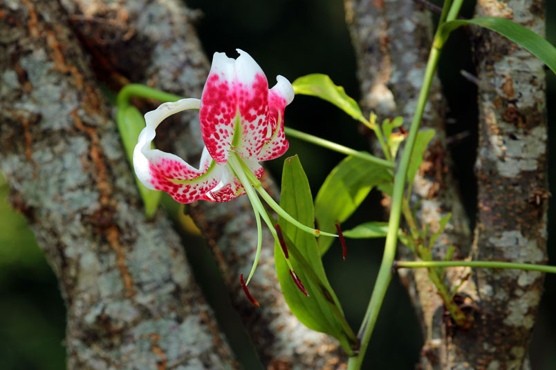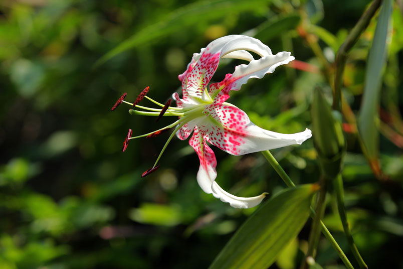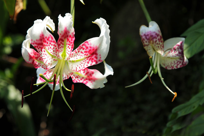鹿子百合蜷曲的白色花瓣上有著豔紅色的鹿斑,被譽為「最美麗的