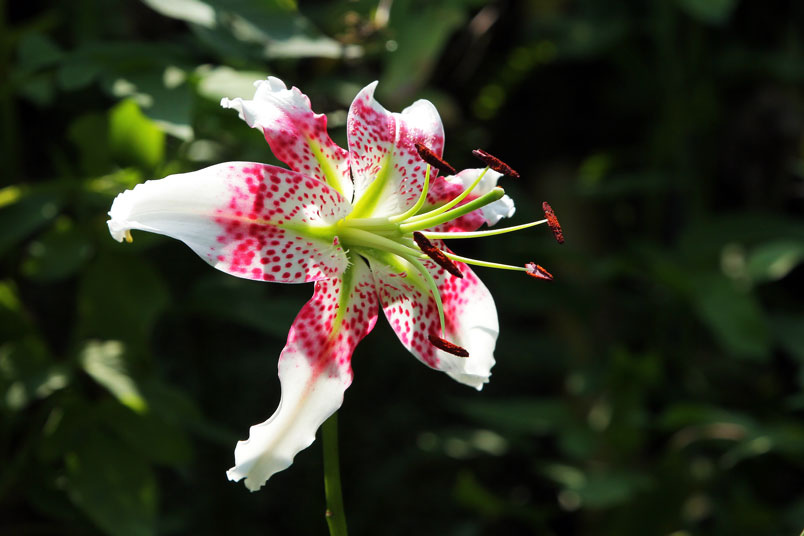 花瓣帶著大紅色斑點,使艷紅鹿子百合看來不似百合,反倒像是幽