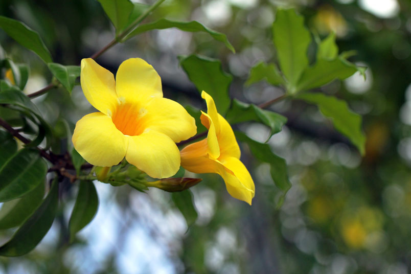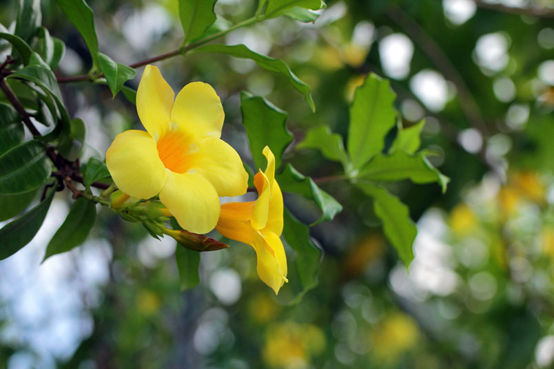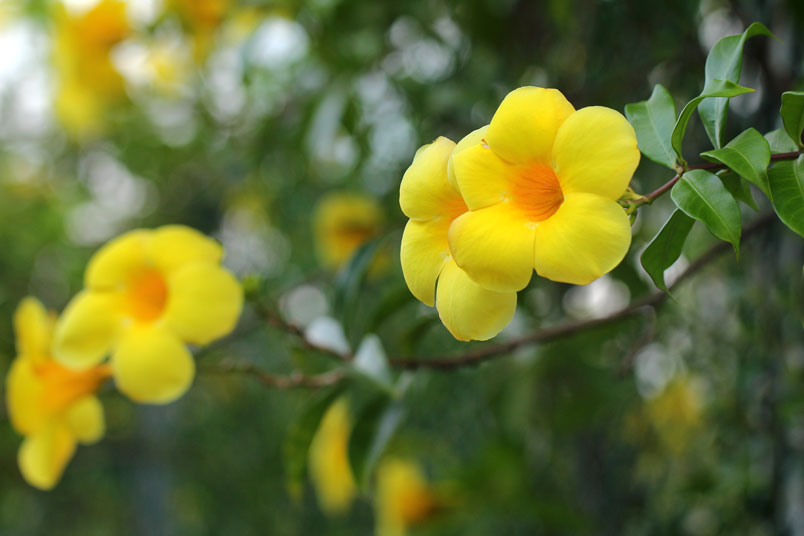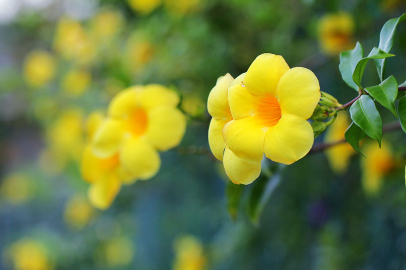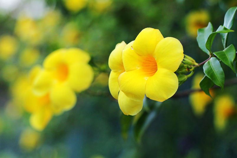 時候花期會一直開到10月。軟枝黃蟬的花會從葉腋長出,有