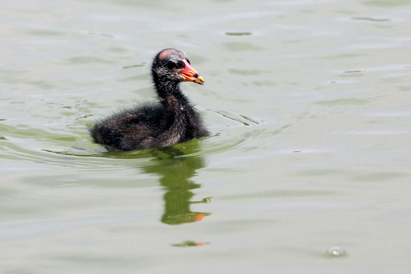 雛鳥全身烏黑,額頭有鮮明之紅點,由親鳥帶領覓食。叫聲清