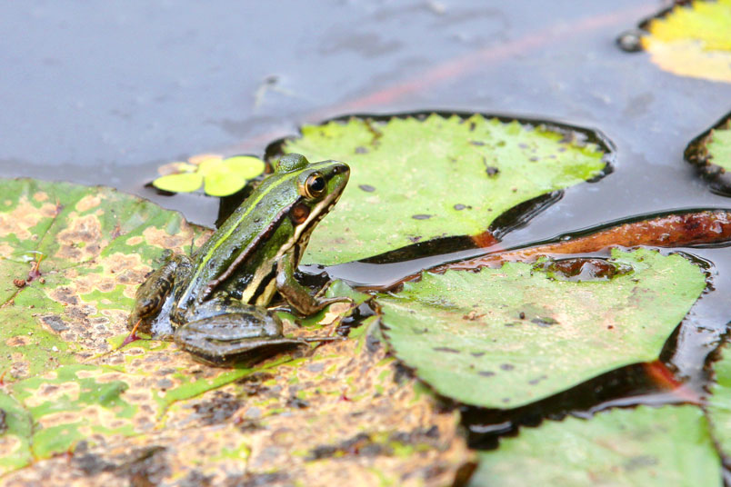 金線蛙,水棲性,喜歡藏身在長有水草的蓄水池或者遮蔽良