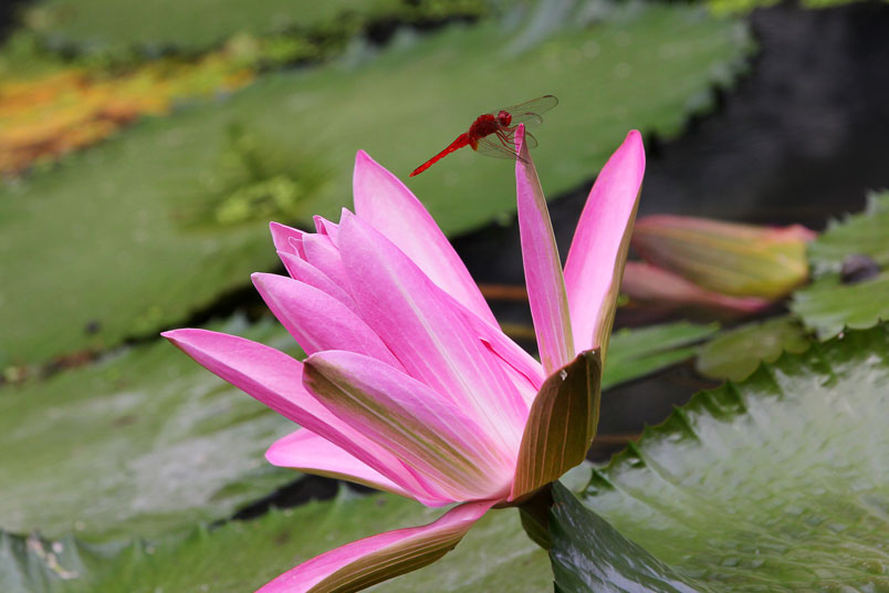 滿池的蜻蜓飛舞,雖說拍蜻蜓沒有挑戰性,不過看見牠們停駐