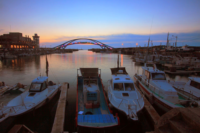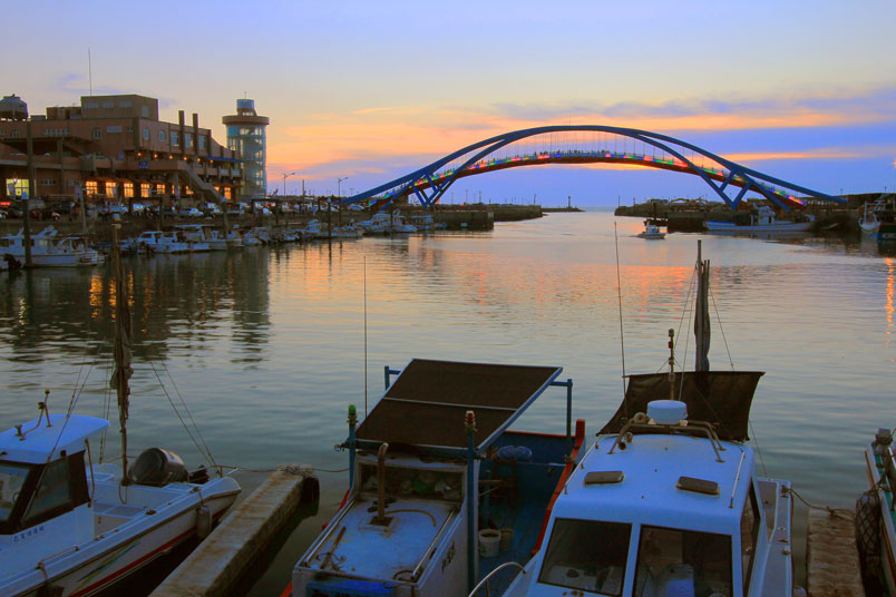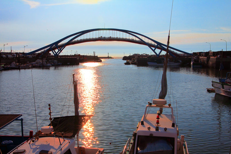 橫跨永安漁港南北兩岸的跨港拱橋,總長115公尺、高17公尺,