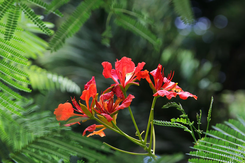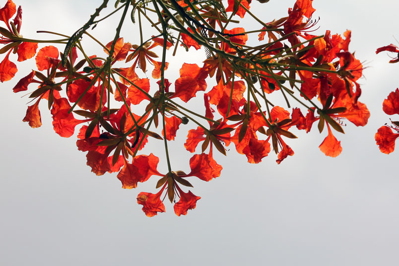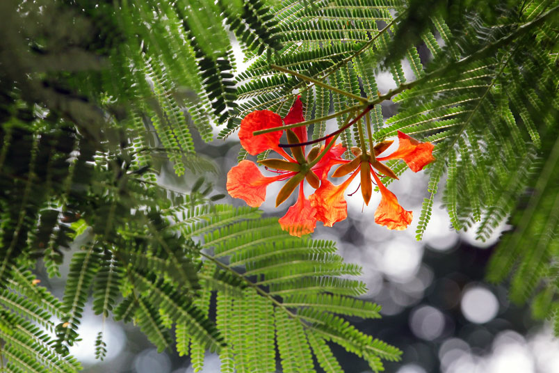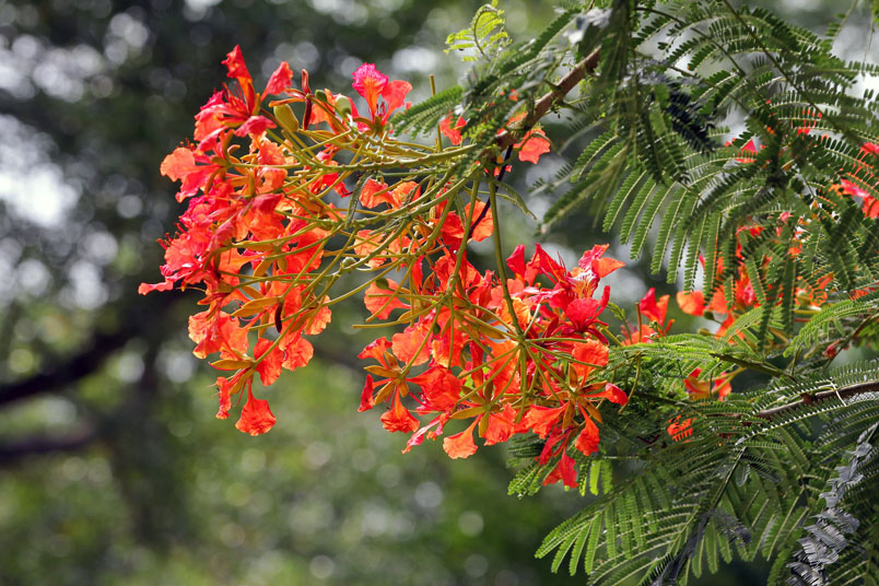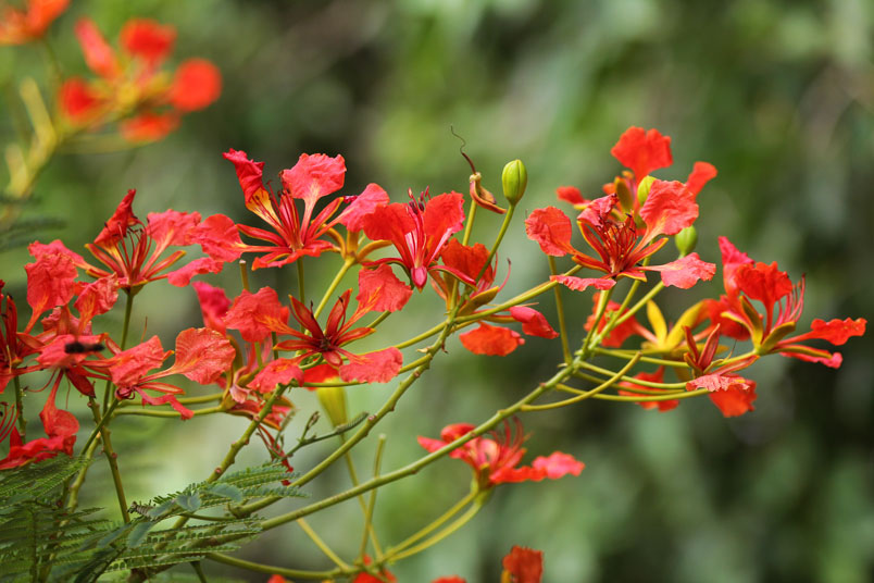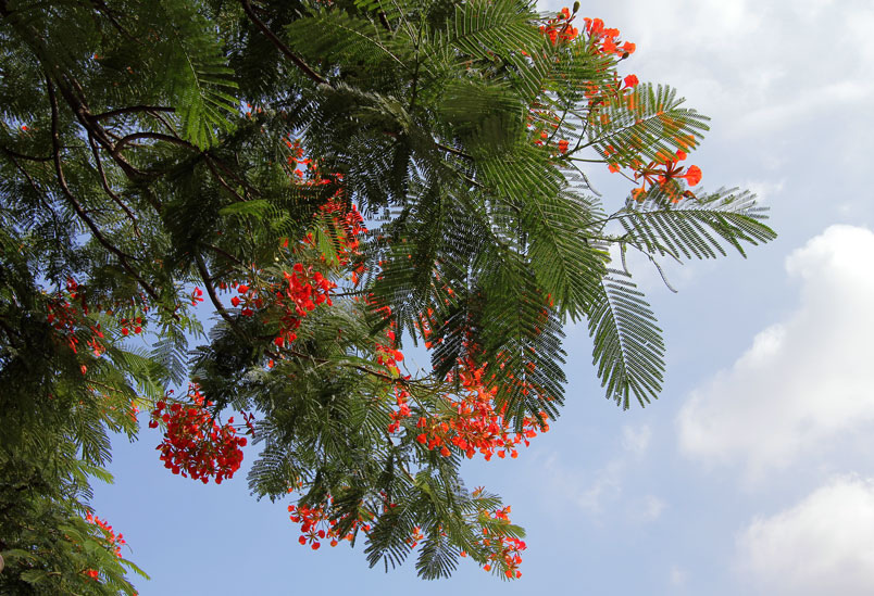 原本五月開花的鳳凰木,目前還開得紅艷艷的。