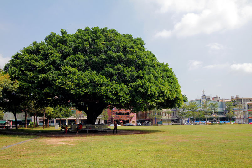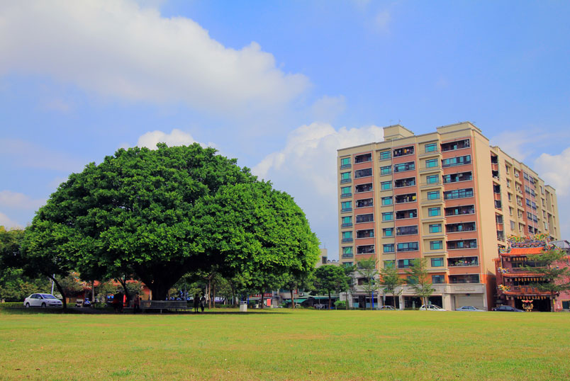 坪是小朋友的最愛;巨大的老榕樹成為園內代表性的植栽