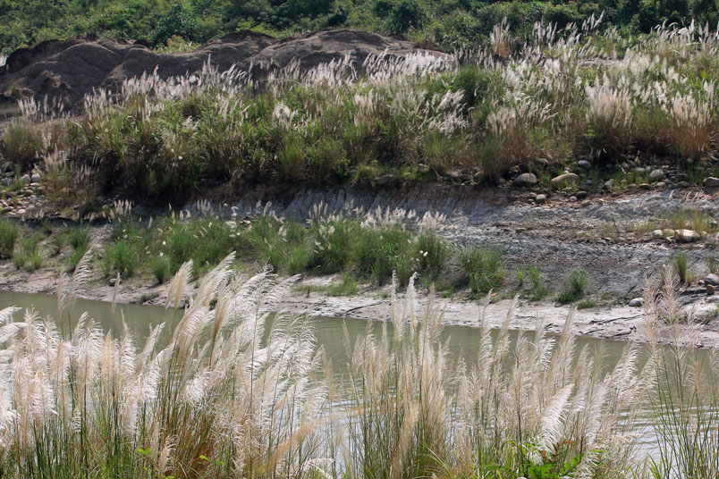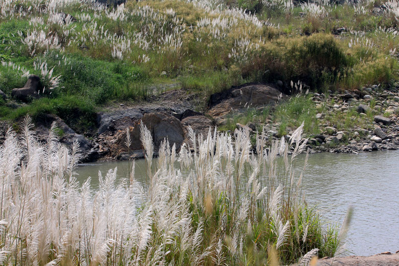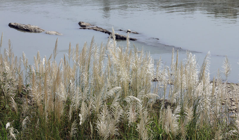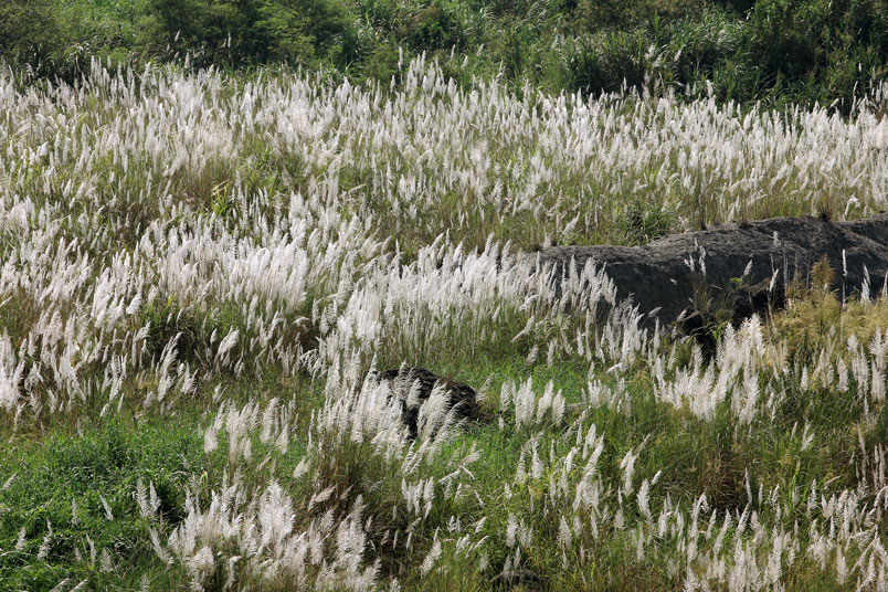 大漢溪的河岸長滿了甜根子草,那一波波、一層層的白浪吸