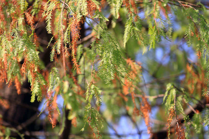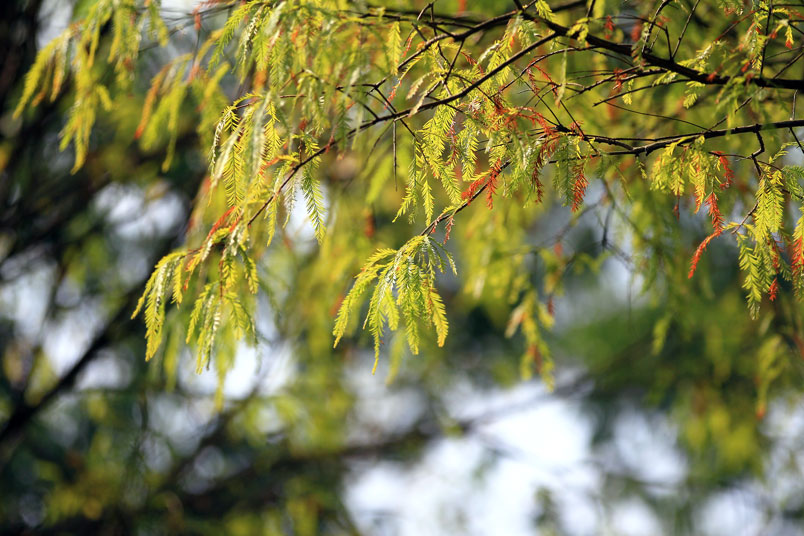 落羽松葉色隨著四季變化,相當特別,在春天長出嫩芽時,