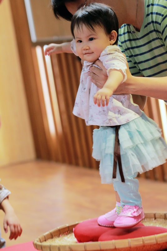 業,接著把嬰兒抱放在米篩之中,讓小孩自由的取出其中