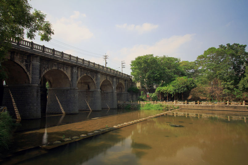 橫跨牛欄河上的東安橋為五孔石砌拱橋,造型兼具結構與美學,