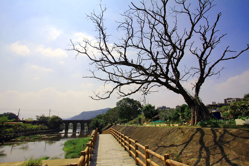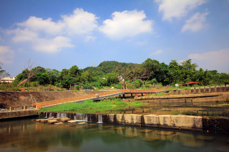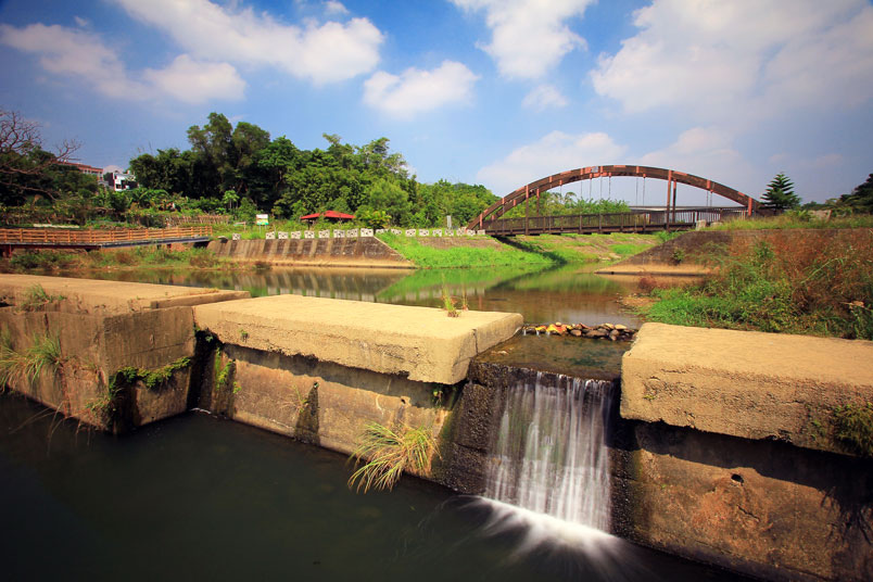 設置人行道,寬約五公尺,河面並設置親水公園休閒區,常見釣