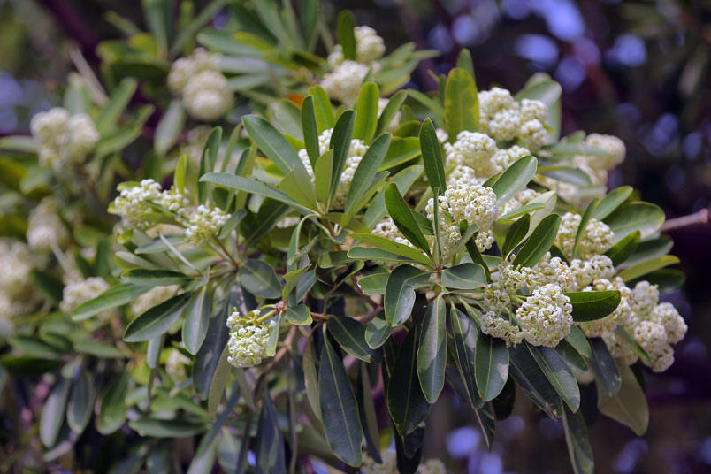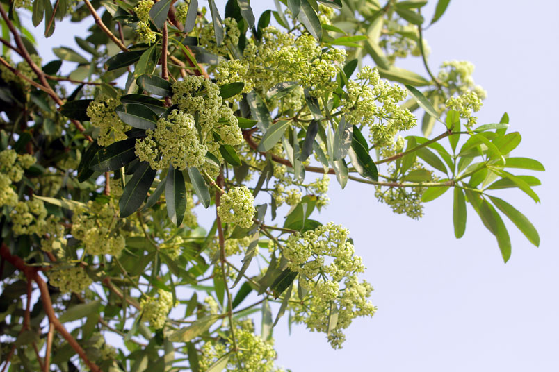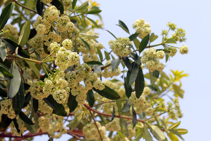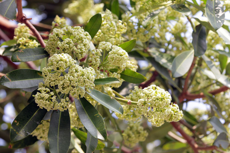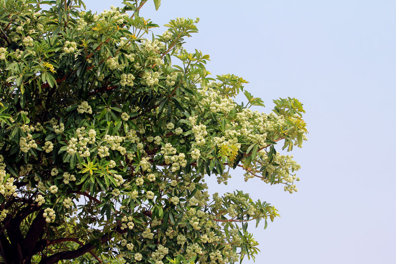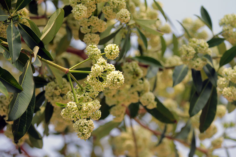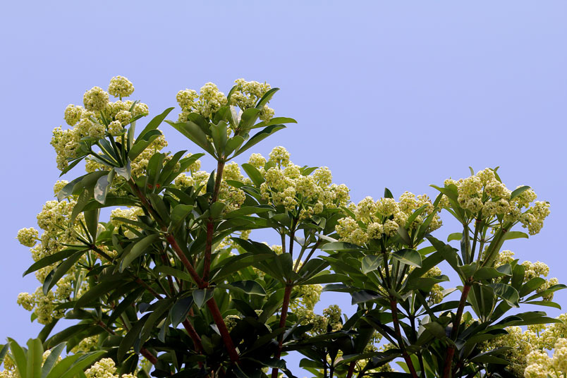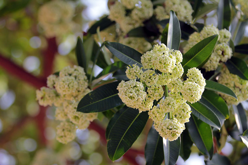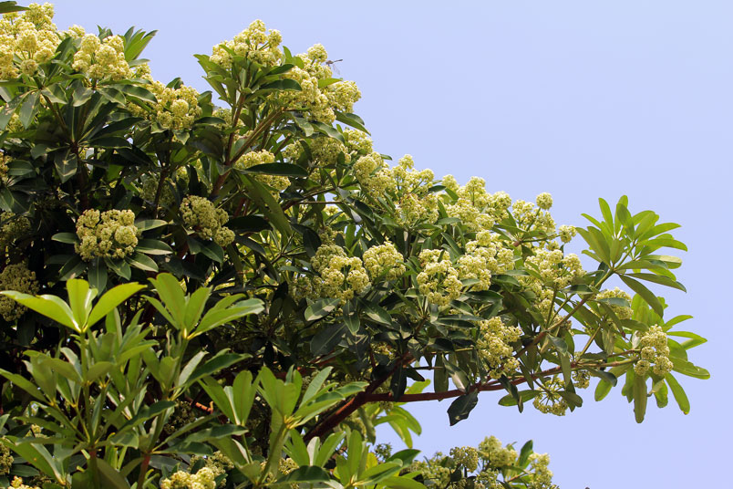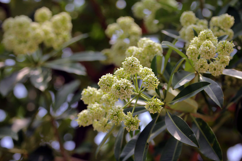 10~11月開綠白色小花,有淡辛香,夜晚香味更濃,繖狀花序,