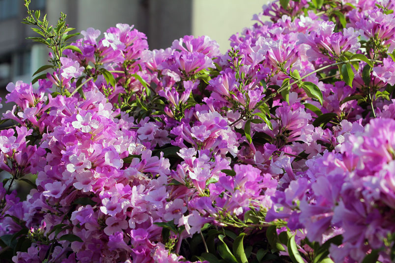 蒜香藤不開花則已,一開花就艷驚四座。只是這麼柔美的