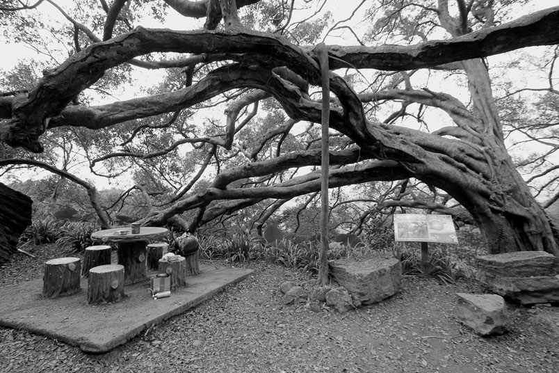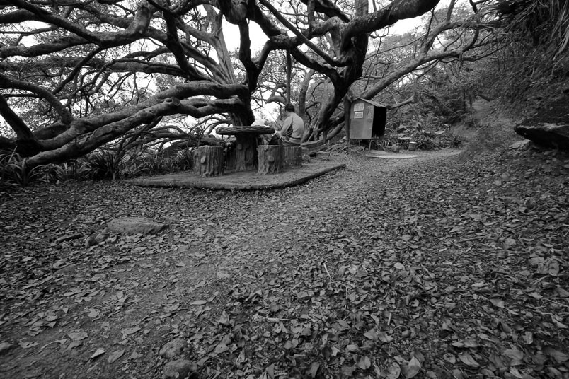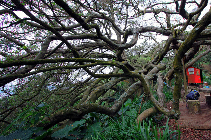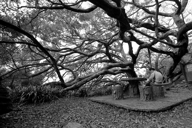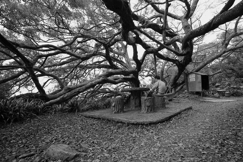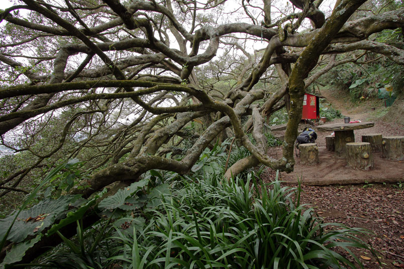 攏叢聚,並無壯碩的樹幹。樹前有小空地,有石塊可坐,前可眺覽