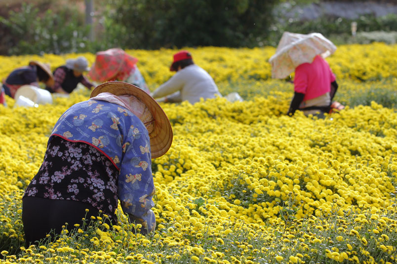 每年最期待這個季節,望著一朵朵美麗圓滿的杭菊,徜徉在廣袤