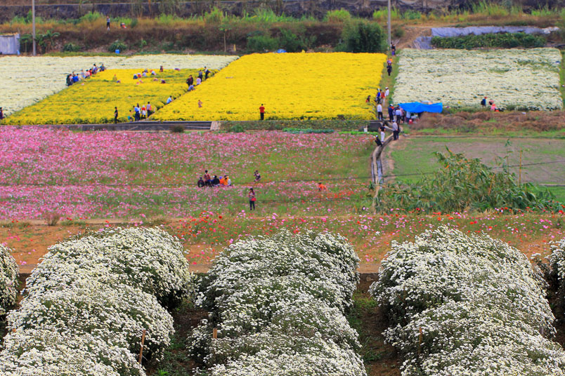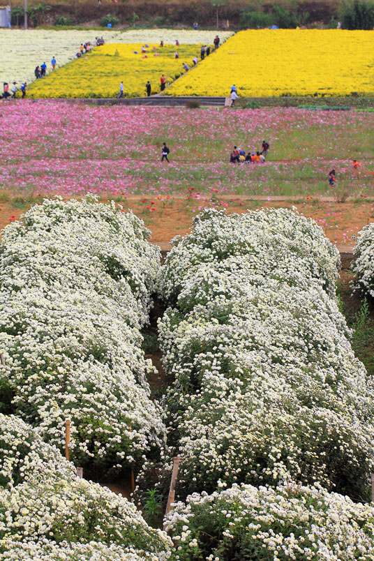 鄉,遠遠望去,宛如在田野鋪上一層白雪和黃色花毯。