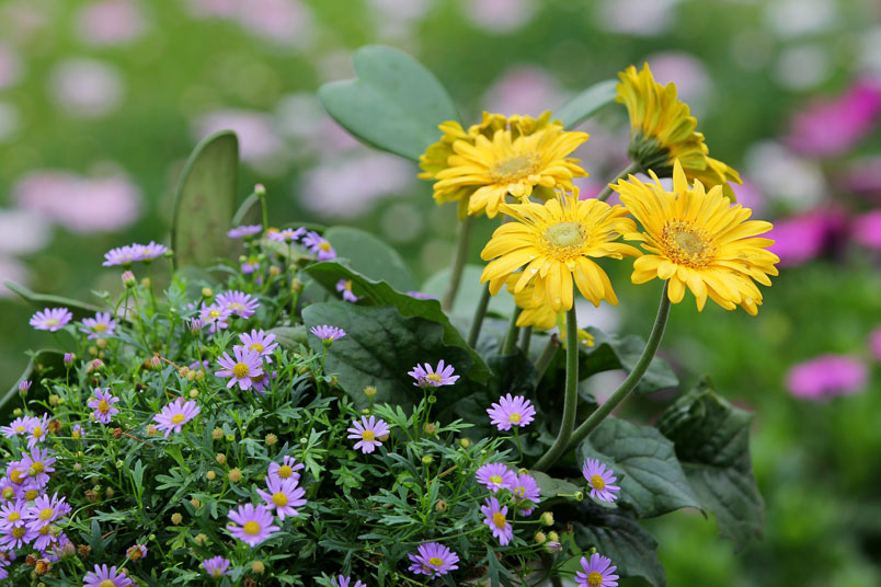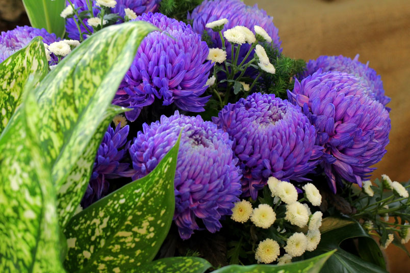 菊裳茬苒紫羅衷,秋日融融小院東。