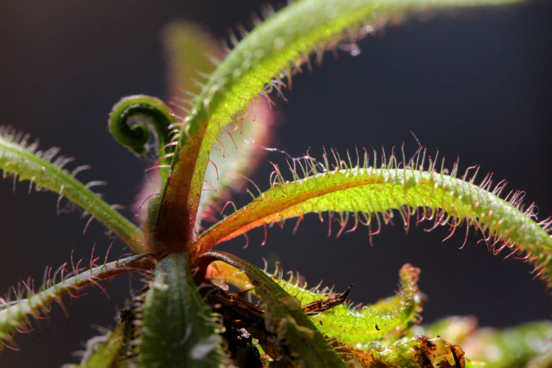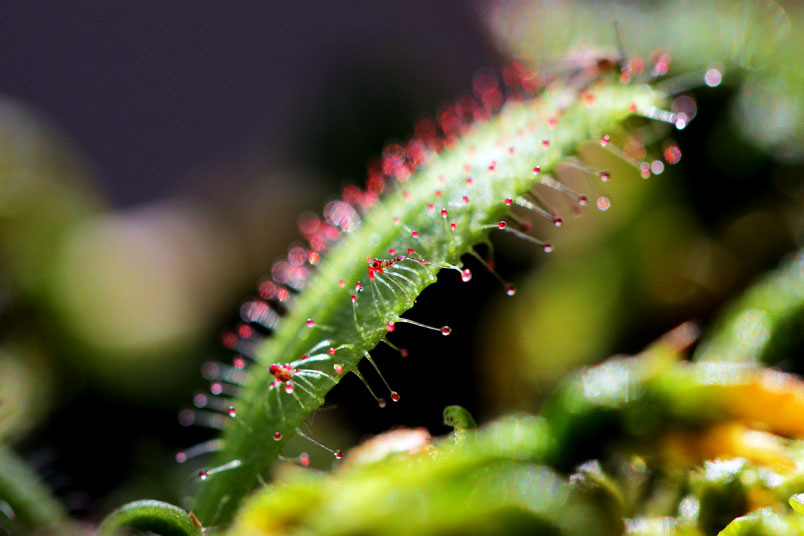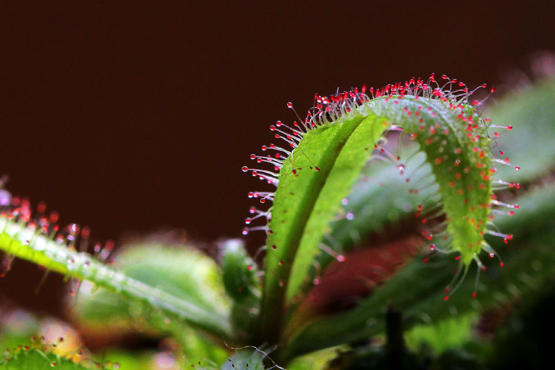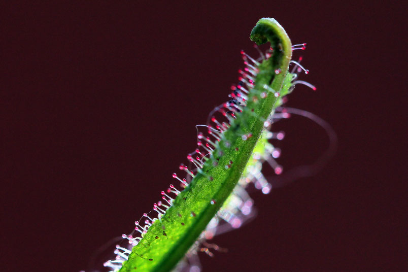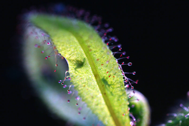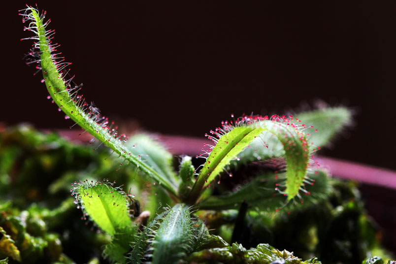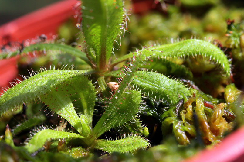 阿迪露毛氈苔是華麗的毛氈苔,只要濕度夠,就可見葉子的腺