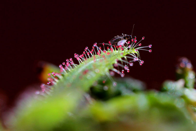 液晶瑩剔透的美麗和毛氈苔捕蟲的功能,還可以在家練練微距