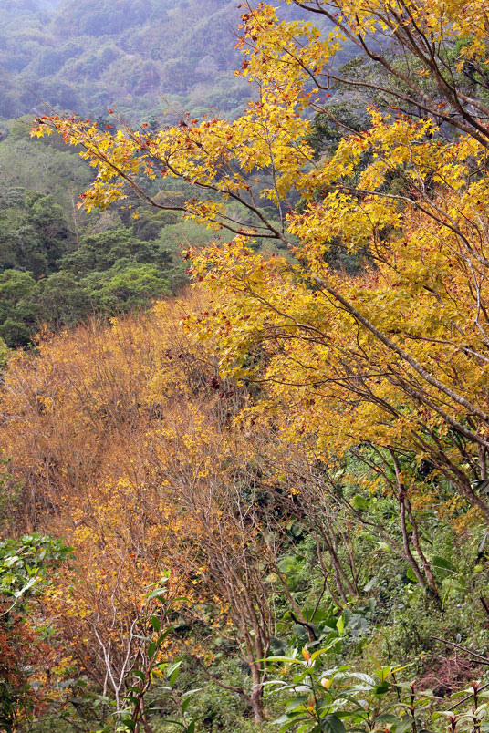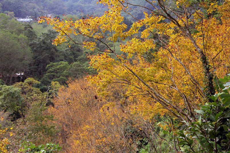 這個季節在仙谷可以看到山坡上的黃金楓已呈一片金黃色,